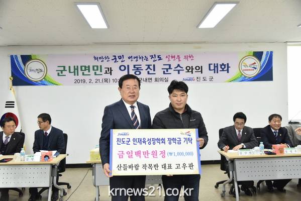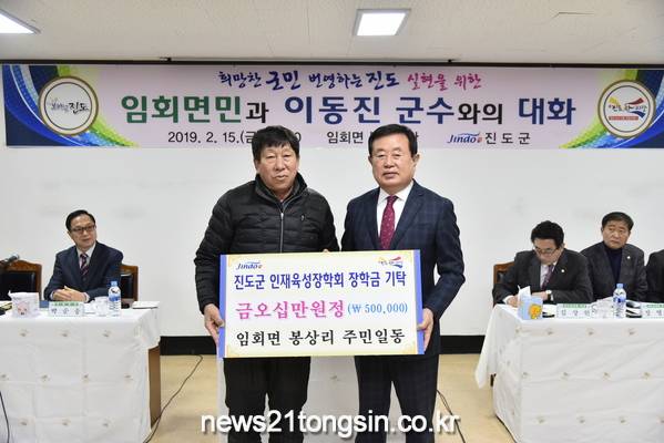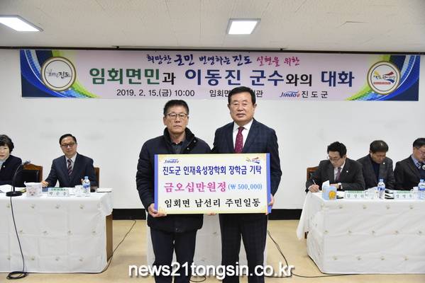 지난 2월 15일 진도군 임회면 봉상마을과 남선마을에서 환경클린운동 시상금 각각 50만원의 진도군인재육성장학금을 전달하면서 올해 장학금 기탁이 시작됐다.