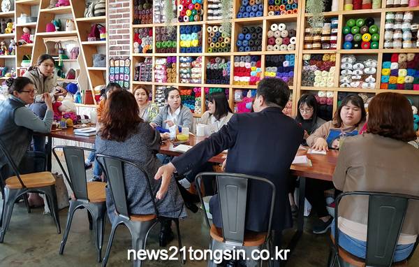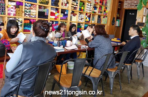 평소 이곳은 뜨개질을 배우러 오는 엄마들이 삼삼오오 모여 육아와 생활이야기를 서로 나누고 소통하는 공간이다.