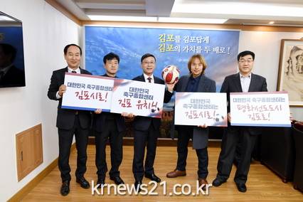 정 시장은 “김포는 국제공항, 항만 등 광역교통의 중심지로 국가대표 축구팀 이동의 편리성을 갖추고 있는 곳”이라며 “축구종합센터 유치 시 각종 스포츠대회 유치로 지역경제 활성화와 문화적 시너지 효과를 창출할 것으로 기대한다”고 말했다.