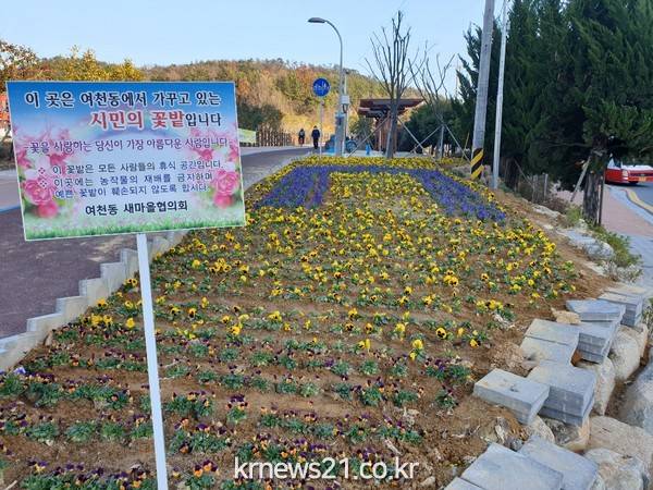 특히, 여천동 주민센터 입구에 ‘여수문’을 형상화한 꽃밭을 조성해 많은 이들에게 볼거리를 제공하고 있다.
