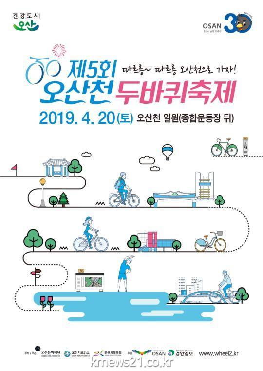 오산천 자연환경을 마음껏 즐기며 온 가족이 함께 달리는 자전거의 향연 ‘2019년 제5회 오산천 두바퀴 축제’가 오는 4월 20일 오산시 도심을 가로지르는 생태하천 오산천 일원에서 개최된다.