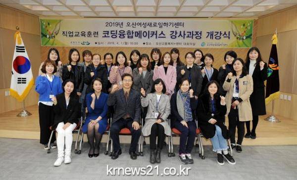 오산시(시장 곽상욱) 오산여성새로일하기센터는 지난 1일 오산 고용 복지 플러스센터 대회의실에서 경력단절 여성을 대상으로 「코딩 융합 메이커스 강사 양성과정」 개강식을 교육생 및 내빈 30여 명이 참석한 가운데 가졌다.