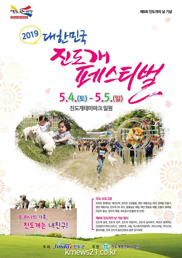 오는 5월 4일(토)부터 5월 5일(일)까지 진도개 테마파크 일원에서 개최되 ‘대한민국 진도개 페스티벌’ 축제 포스터가 확정됐다.