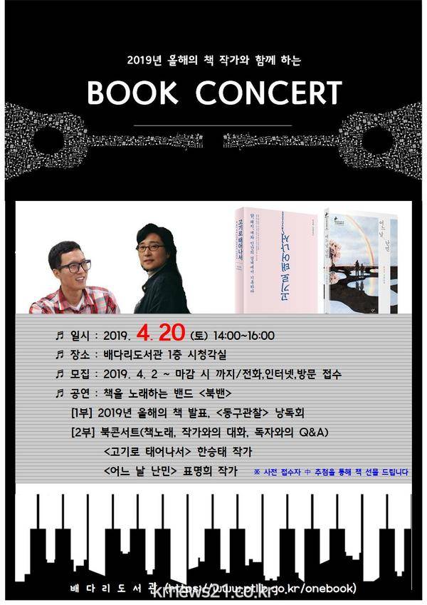 북 콘서트 1부에서는 한 책 독서운동의 12년 역사를 되돌아보는 시간을 가지고, 2부에서는 책을 노래하는 밴드 ‘북 밴’의 책 노래 공연과 한승태, 표명희 작가와 함께하는 대화, 독자와의 Q&A, 작가가 직접 들려주는 낭독 등으로 진행될 예정이다.