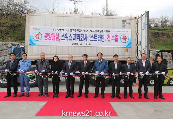 광양시는 4. 11. 국내에서는 처음으로 1차 가공한 당절임 매실을 스위스 제약회사 ‘