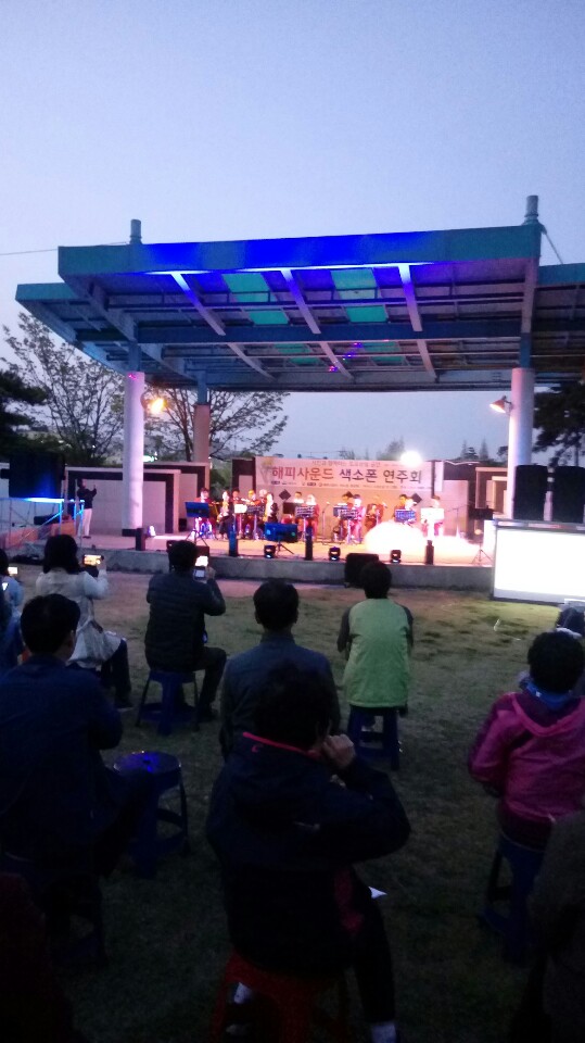 50세이상15명으로구성된 해피사운드색소폰 동호회는 여수시의 주최아래 4월20일부터 성산공원에서시작하여 6월22일(거북공원),