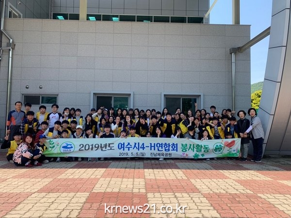 ▲ 지난 5일 여수시 4-H연합회(회장 문현진)가 여수진남체육공원에서 어린이날 봉사활동을 펼쳤다.