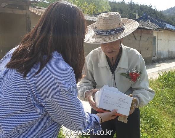 카네이션은 관내 화훼농원의 후원을 받아 장평면사무소 직원들이 어버이날을 맞아 어르신들에