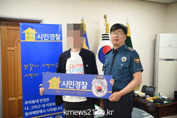 또한 A씨에게는 살신성인의 정신으로 법치질서 확립에 기여한 정신을 기리기 위해 시민경찰로 선정 후 미니흉장을 달아주었다.