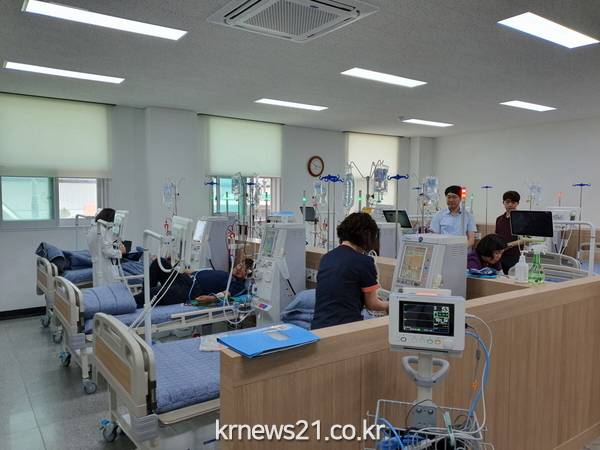특히 거동이 불편한 환자들을 위해 장애인협회와 연계해 콜택시 차량을 이용한 통원 치료와 4시간 동안 진행되는 투석의 무료함을 달랠 수 있는 TV장착 등 편안한 휴게 공간과 같이 최신 투석장비를 설치했다.