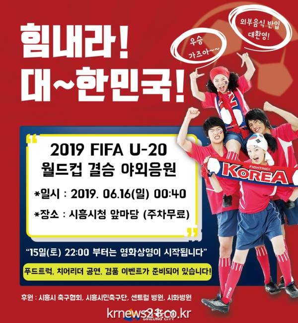 시흥시(시장 임병택)는 오는 16일 새벽1시에 개최되는 '2019 FIFA U-20 남자월드컵