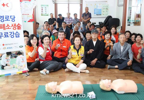 ▲ 심폐소생술 무료강습 장면보령시는 12일 오후 동대1통 경로당에서 김동일 시장과 유창기 대한적십자사 충남지구 협의회장, 어르신 등 30여 명이 참석한 가운데 심폐소생술 무료강습 런칭행사를 가졌다고 밝혔다.