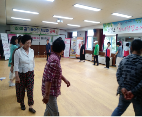 마을별 10명 내외로 팀을 구성하여 주 2회 정도 30분이상 자발적으로 걷기운동을 하는 것이다.
