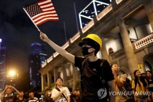 송환법 반대 시위에서 성조기 흔드는 홍콩 시민 /사진=연합뉴스