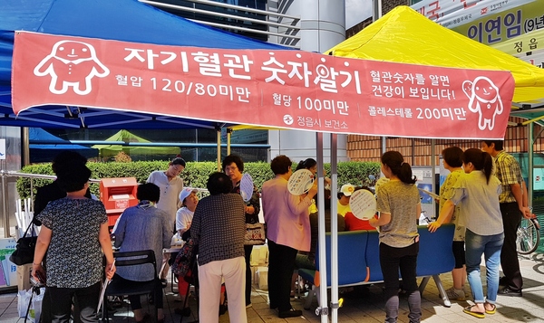 이를 위해 보건소는 이달 20일 시립중앙도서관을 시작으로 21일 나눔빌, 9월 2일 농어촌공사, 9월 3일 수성동 정읍 우체국 광장에서 찾아가는 레드서클 존(혈압, 혈당, 콜레스테롤 측정 및 심뇌혈관질환 예방관리 교육)을 운영, 무료로 기초건강 검진과 상담을 실시한다.