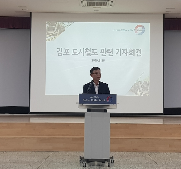 정하영 김포시장은 8월 26일 시청 대회의실에서 기자회견을 열고 “김포시와 국토교통부 등 김포도시철도