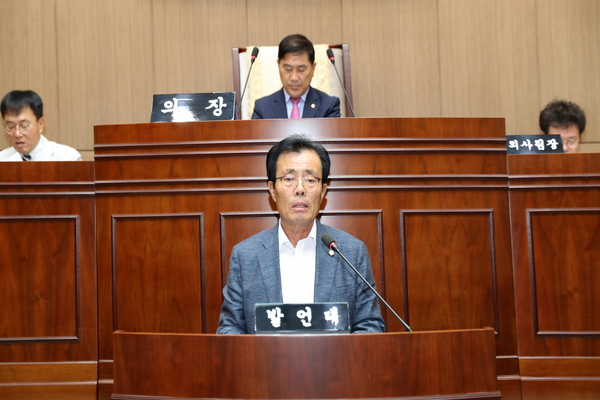 부안군의회 오장환 의원(동진·주산·백산 선거구)이 지난 8월 30일 부안군의회 제303회 임시회 제3차 본회의에서 백산 평교 사거리에 회전교차로 설치 필요성을 강조하는 5분 자유발언을 하였다.