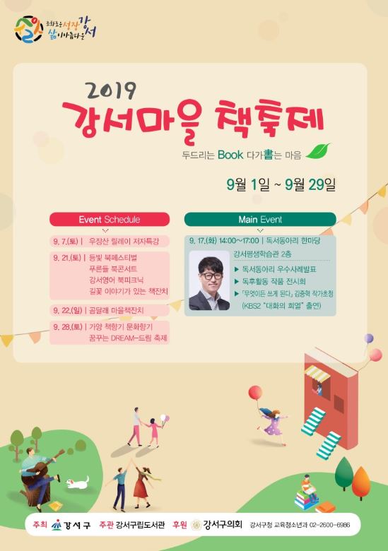 구는 오는 9월 1일부터 한 달간 지역 내 8개 구립도서관과 함께 ‘제4회 강서마을책축제’를 연다고 밝혔다.