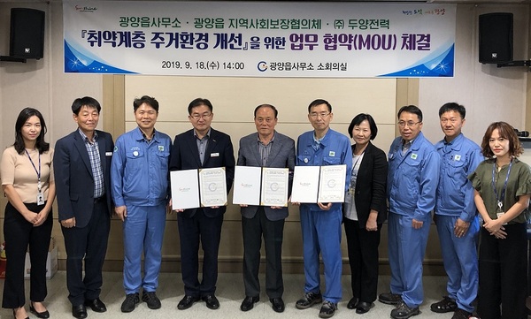 정홍기 광양읍장은 “협약에 참여한 ㈜두양전력과 광양읍지역사회보장협의체 위원 여러분께