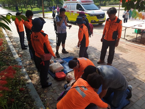 체험부스는 심폐소생술 체험부스와 소화기 체험부스로 구분하고, 심폐소생술 체험부스에서는 등산 중 발생 가능한 산악사고 대응 및 응급처치 요령을 교육체험을 실시하고 소화기 체험부스는 등산 중 화기 취급금지 및 주택용소방시설 설치 의무 홍보, 소화기 사용법 체험교육을 실시했다.