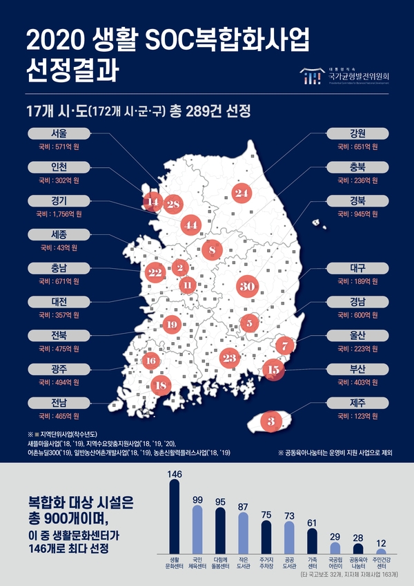 한편, 이와 별개로 신안군은 「암태면 생활밀착형 국민체육센터 건립」, 「신안군 보조축구장 및 야구장 조성 사업」등 체육 분야 4개 사업에 국비 43억원(기금30, 균특8, 특교세5)을 기확보하여 행정절차를 이행 중에 있으며, 이번 생활SOC 사업을 포함하면 국비 총 105억원을 확보하게 되었다.