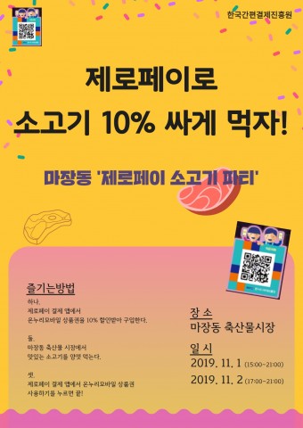 제로페이 운영 민간 재단법인 한국간편결제진흥원(이사장 윤완수)은 11월 1일부터 2일까지 마장 축산시장에서 소고기 파티를 개최한다고 22일 밝혔다.