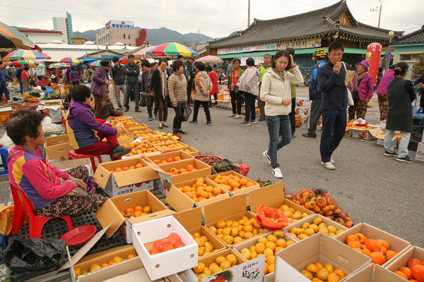 ▲ 구례 5일시장 모습구례군(군수 김순호)은 구례감(단감, 대봉)의 집중 출하 시기에 맞춰 구례5일시장에서