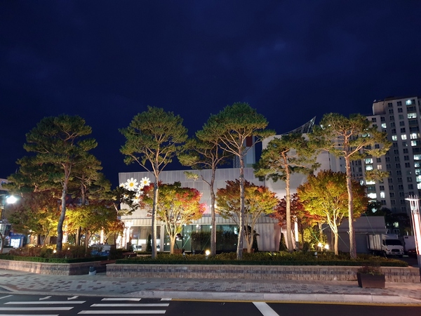 맑지만 일교차가 큰 가을 날씨를 보인 30일, 정읍시 연지아트홀의 단풍이 잎사귀마다 물감을 풀어놓은 듯 형형색색 물들며 아름다운 가을밤 풍경을 선사하고 있다.