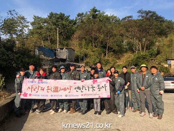 지난 2일 참조은신협 두손모아봉사단원들이 여수 만덕동 취약계층 8세대에 따뜻한 겨울나기를 위해 연탄 3000장을 전달했다.