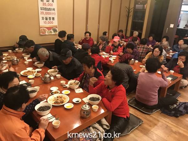 지난 18일 여수시 웅천동 중화음식점 ‘고고차이나’(대표 이영준)가 동문동 어르신 60여 명에게 점심 식사를 대접했다.