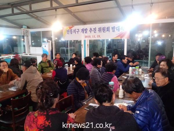2019년11월 19일 만흥지구 개발 찬성위원회을 발족하고 주민들의 뜻에 부흥하고 살기좋은