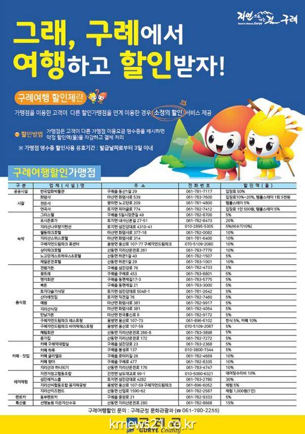 구례군(군수 김순호)은 ‘그래, 구례에서 여행하고 할인받자(그래, 구례 여행 할인)!’