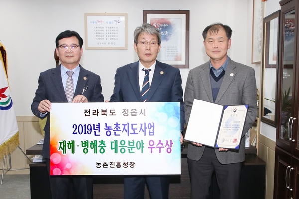 정읍시농업기술센터(소장 김정엽)가 농촌진흥청이 주관한 ‘2019년 농촌지도기관 재해・병해충 대응 분야 평가회’에서 우수기관으로 선정됐다.