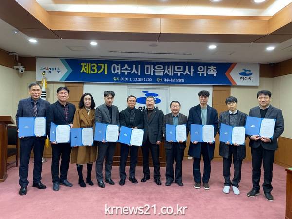 여수시(시장 권오봉)는 내년 말까지 영세사업자와 취약계층, 농어촌 주민 등을 위해 무료 세무상담 서비스를 제공할 ‘제3기 마을세무사’ 10명을 13일 위촉했다.