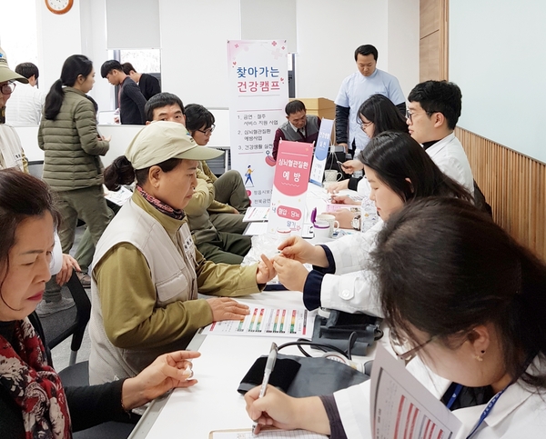 건강 캠프는 평소 보건소 방문이 어려운 직장인과 주민을 위해 보건소에서 지원하는 다양한 사업 전개를 위해 통합건강증진 사업단이 직접 사업장과 공공기관에 방문하는 것이다.
