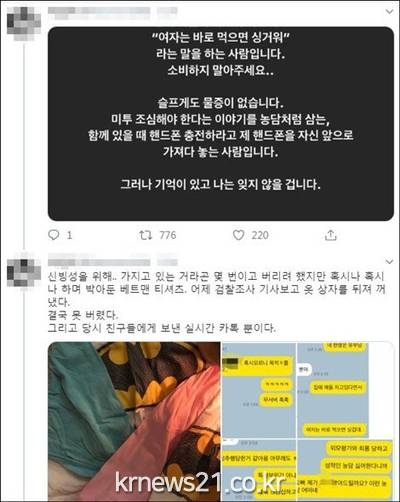 이후 폭로글에 이목이 쏠리자 A씨는 20일 SNS 비공개로 돌리며 '더 이상의 RT를 멈추기 위해 트위터 계정을 비공개로 바꿨다. 주치의 선생님을 뵙고 왔는데 스스로의 안정이 우선적으로 중요하다고 판단했다"고 남겼다.