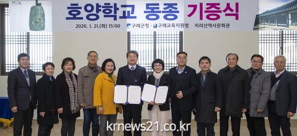 이날 김순호 구례군수는 “호양학교 동종을 많은 국민들이 관람할 수 있도록 큰 결정을 해주신 구례교육지원청 임윤덕 교육장님께 진심으로 감사드린다.”며 “호양학교 동종이 상징하는 민족정신을 이어갈 수 있도록 노력하겠다.”라고 말했다.