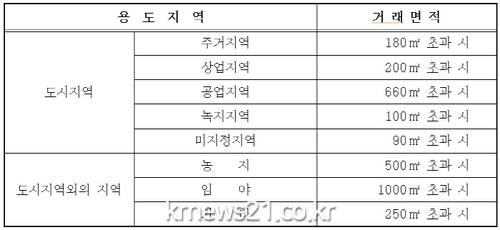 ▲ [토지거래계약 시 허가를 받아야 하는 면적/국토부제공]울주군 청량읍 율리에 조성 예정인 ‘울산농수산물도매시장 시설현대화사업’ 부지가 오는 1월 29일부터 토지거래허가구역으로 지정된다.