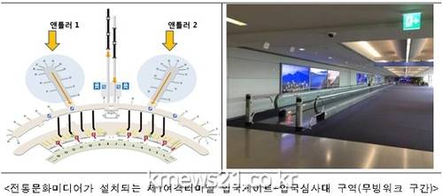 협약에 따라 양 기관은 올해 말까지 인천공항 제1터미널 입국게이트에서 심사대 사이의 무빙워크 구간인 '엔틀러 구역'에 다양한 우리 전통문화유산을 주제로 첨단 디자인과 음악을 조합한 영상을 상영할 '전통문화미디어'를 설치 운영할 예정이다.