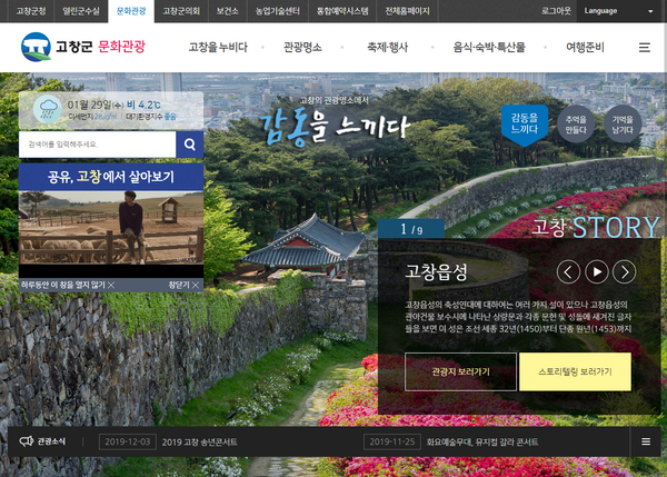 고창에서 이뤄지는 다양한 소식과 생활정보를 한눈에 볼 수 있도록 ‘오늘의 고창’ 코너를 마련했고, 기존에 없던 다양한 콘텐츠를 추가해 홈페이지를 찾는 사람에게 즐거움을 줄 수 있도록 했다.