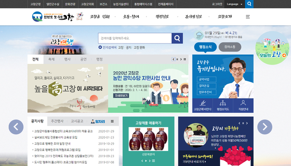31일 고창군에 따르면 ‛대표홈페이지 기능개선 및 고도화사업’을 마무리하고 이날부터 새롭게 본격 서비스를 개시했다.