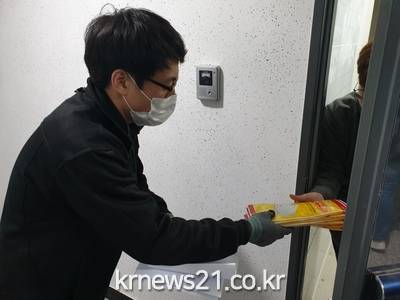 방역‧후원물품을 총 관리하며 현장에서 주민들과 소통하고 있는 덕산읍행정복지센터 직원들은 4일 오후 9시, 혁신도시 인접 마을, 공동주택 등에 마스크 100,000개를 전달했다.