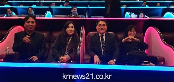 여수시에 따르면 권 시장은 여수 출신이며 지난해 자랑스런 여수인으로 선정된 영화감독 겸 뮤지컬연출가 장유정 씨를 응원하기 위해 직접 극장을 찾았다고 밝혔다.