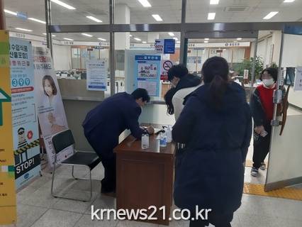 이에따라 근무시간 내 청사 출입자에 대한 방문기록 작성과 손소독제 사용을 실시하고 있으며, 기간은 상황 종료 시까지다.