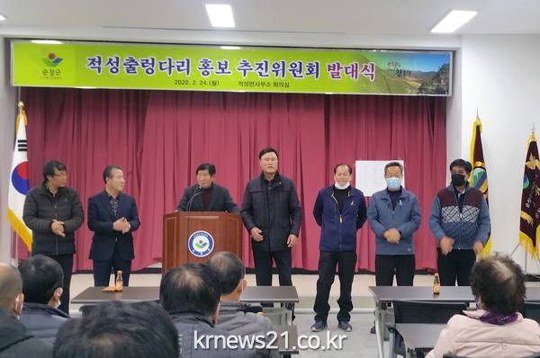 최명귀 추진위원장은 “이번 위원회 출범은 적성면 지역을 대규모 관광지로 발전시키려는 황숙주 군수님의 강한 의지가 담긴 만큼 면민들 또한 하나된 마음으로 적성면이 전국적인 관광명소가 될 수 있도록 홍보에 적극적으로 동참하겠다”고 전했다.