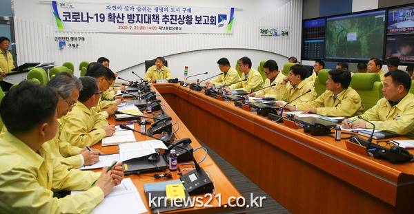 ▲ 구례군, 코로나19 확산방지 총력 대응전남 구례군(군수 김순호)이 25일 코로나19 확산 방지대책 추진상황 보고회를 개최했다.