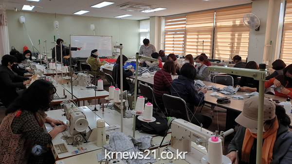면 마스크는 지난 6일부터 10일간에 걸쳐 여성회관 강사 및 학습동아리 수강생 40여 명이 오전, 오후로 나눠 주중 주말 가리지 않고 4000매를 제작하게 된다.