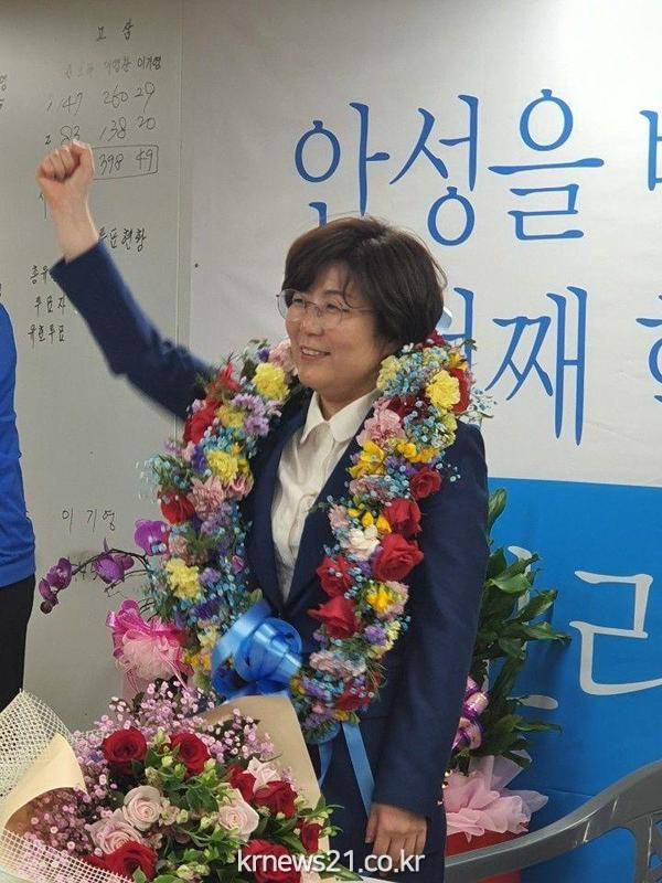 김보라(더불어민주당) 안성시장 재선거 당선자는 당선이 확정된 직후 보도자료를 통해 “안성의 변화와 혁신을 향한 위대한 안성시민의 승리다.”면서 안성시민에게 공을 돌렸다.
