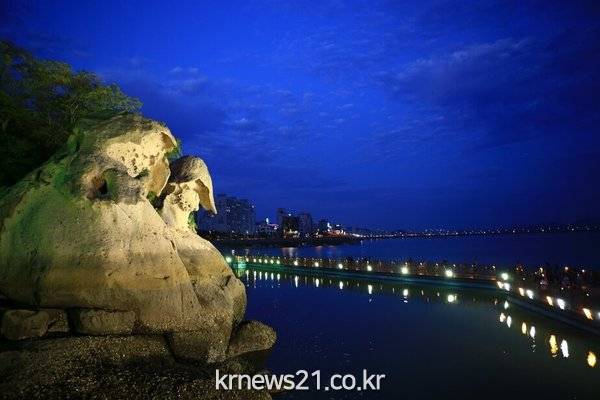 예전에는 배를 타고 나가야만 볼 수 있었던 갓바위를 해상에서 직접 조망할 수 있도록 만들어진 해상보행교를 걷다보면 신비롭고 독특한 매력을 뿜어내는 갓바위와 어우러진 야간경관 조명이 연출하는 로맨틱하고 아름다운 분위기를 만끽할 수 있다.