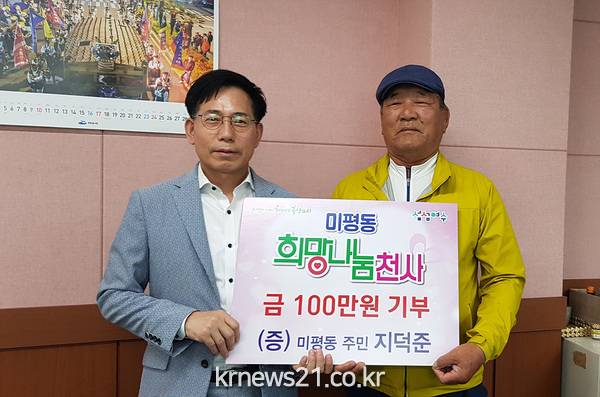 미평동행정복지센터(동장 정병연)에 따르면 지난 11일 미평동에 사는 지덕준(70세)씨가 올해에도 아껴 모은 돈 백만 원을 미평동에 전달했다.